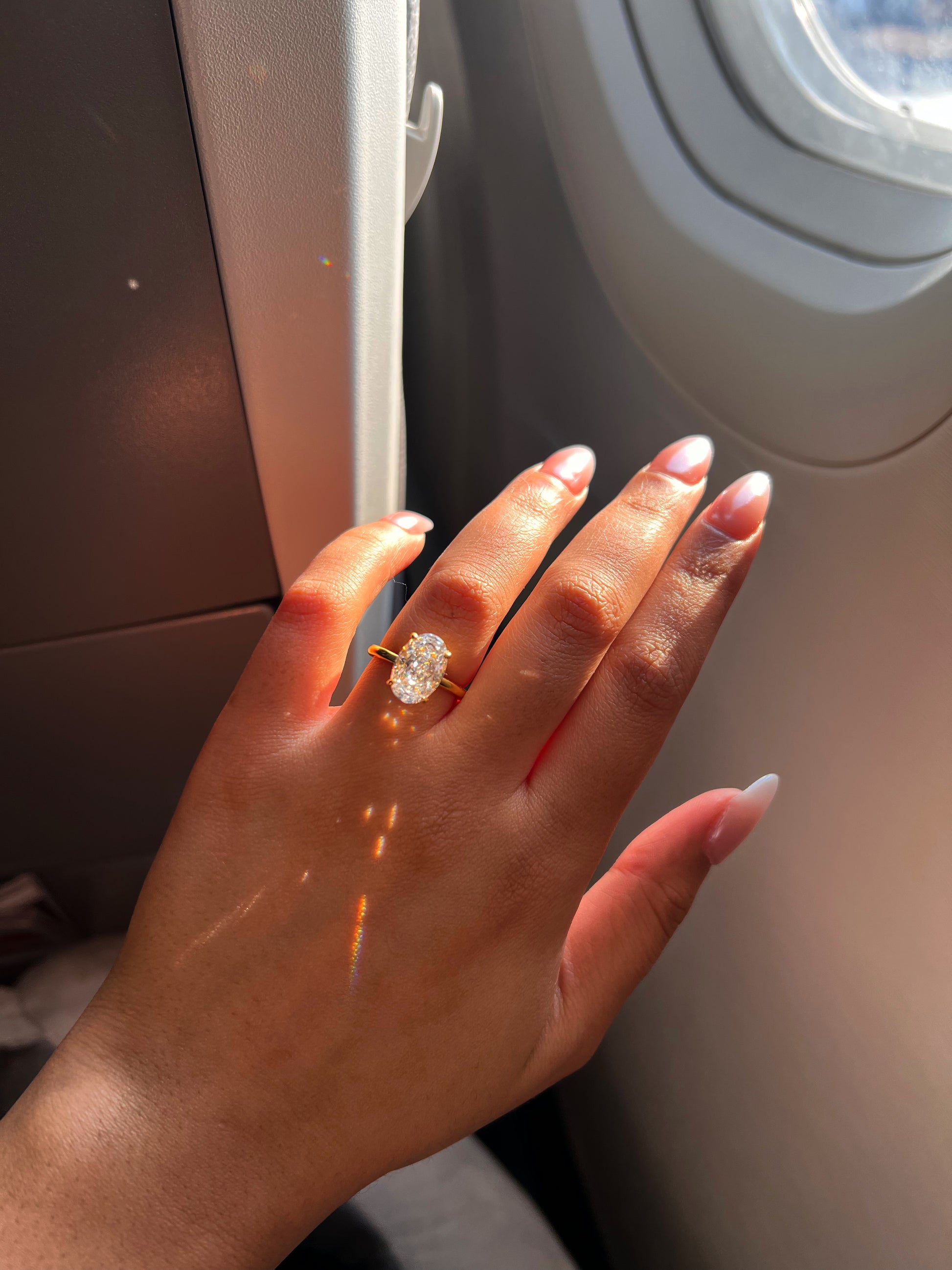 Gold Plain Band Oval Solitaire Ring